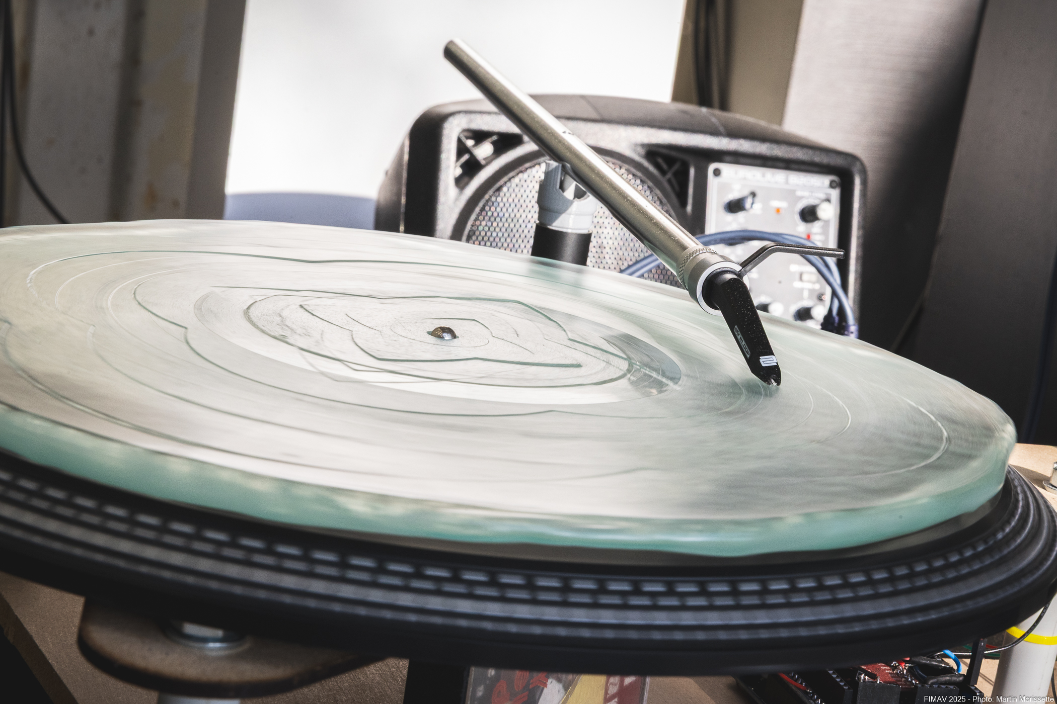 Dans "Je me souviens", Giuseppe Masia détourne la devise du Québec pour réfléchir à la manière dont la mémoire s’inscrit ou s’efface, dans la matière sonore. L’œuvre prend la forme d’un dispositif de vinyles en verre, animés par des tourne-disques DIY qu’il conçoit et fabrique lui-même. Ces objets fragiles, à la fois transparents et résonnants, deviennent des surfaces d’écoute où le souvenir s’altère et se recompose.