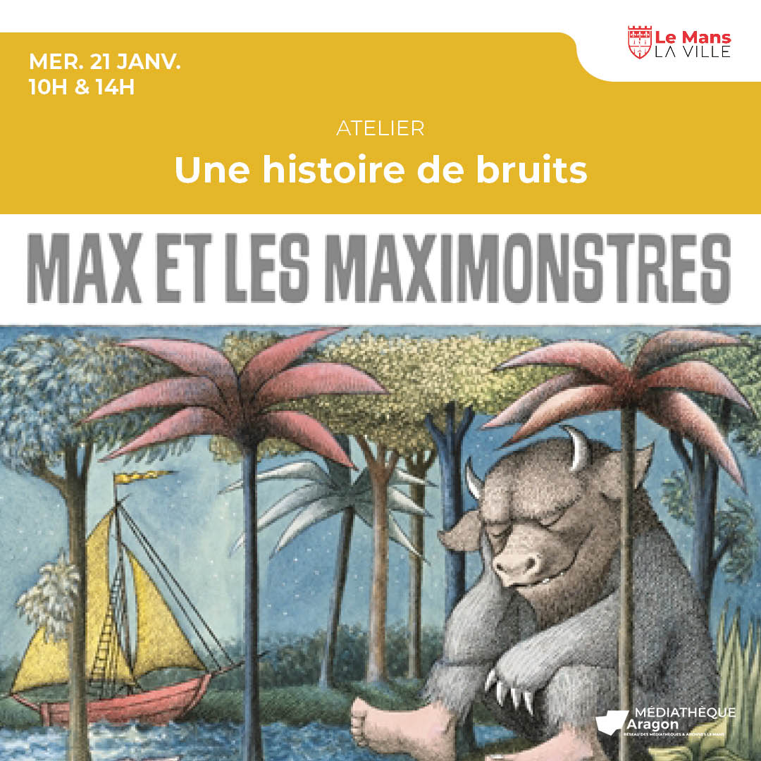 Autour de l’album « Max et les maximonstres », initiez-vous avec votre enfant à la technique du bruitage. Dans le cadre de la programmation Le Mans Sonore.
